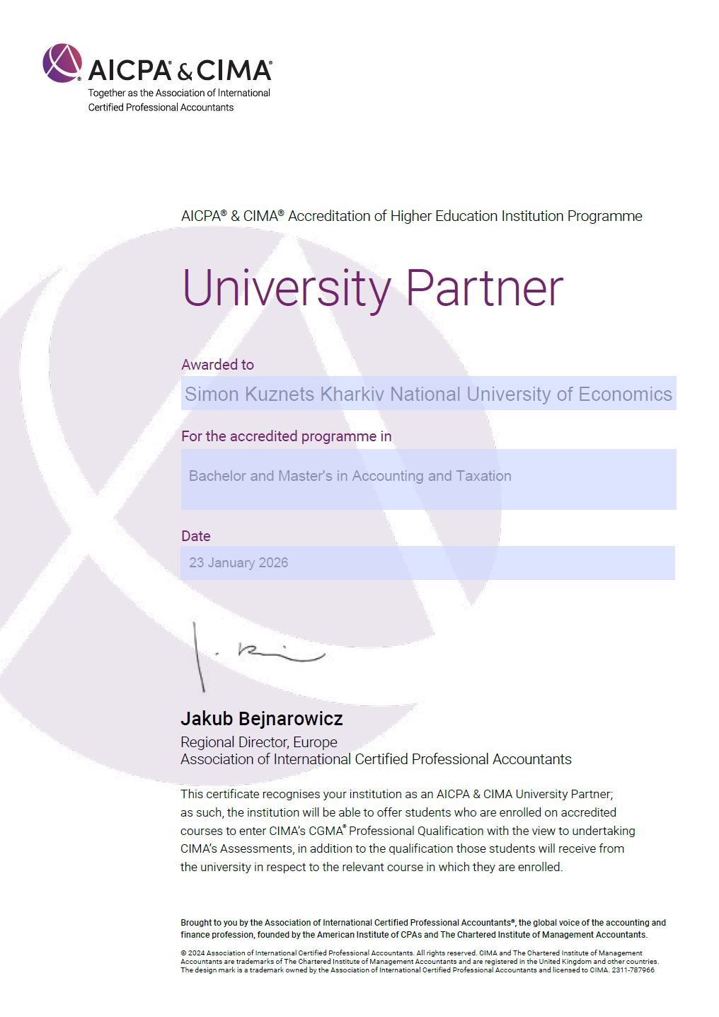 ХНЕУ ім. С. Кузнеця офіційний партнер AICPA-CIMA